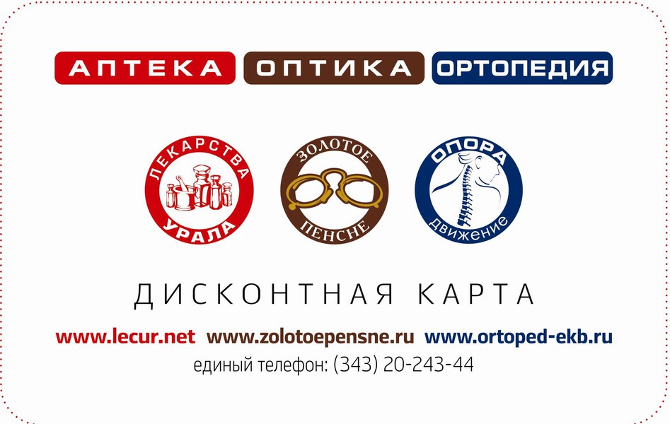 Дисконтная система в салонах оптики «Золотое пенсне» действует совместно с салонами ортопедии «Опора и движение» и аптеками «Лекарства Урала»